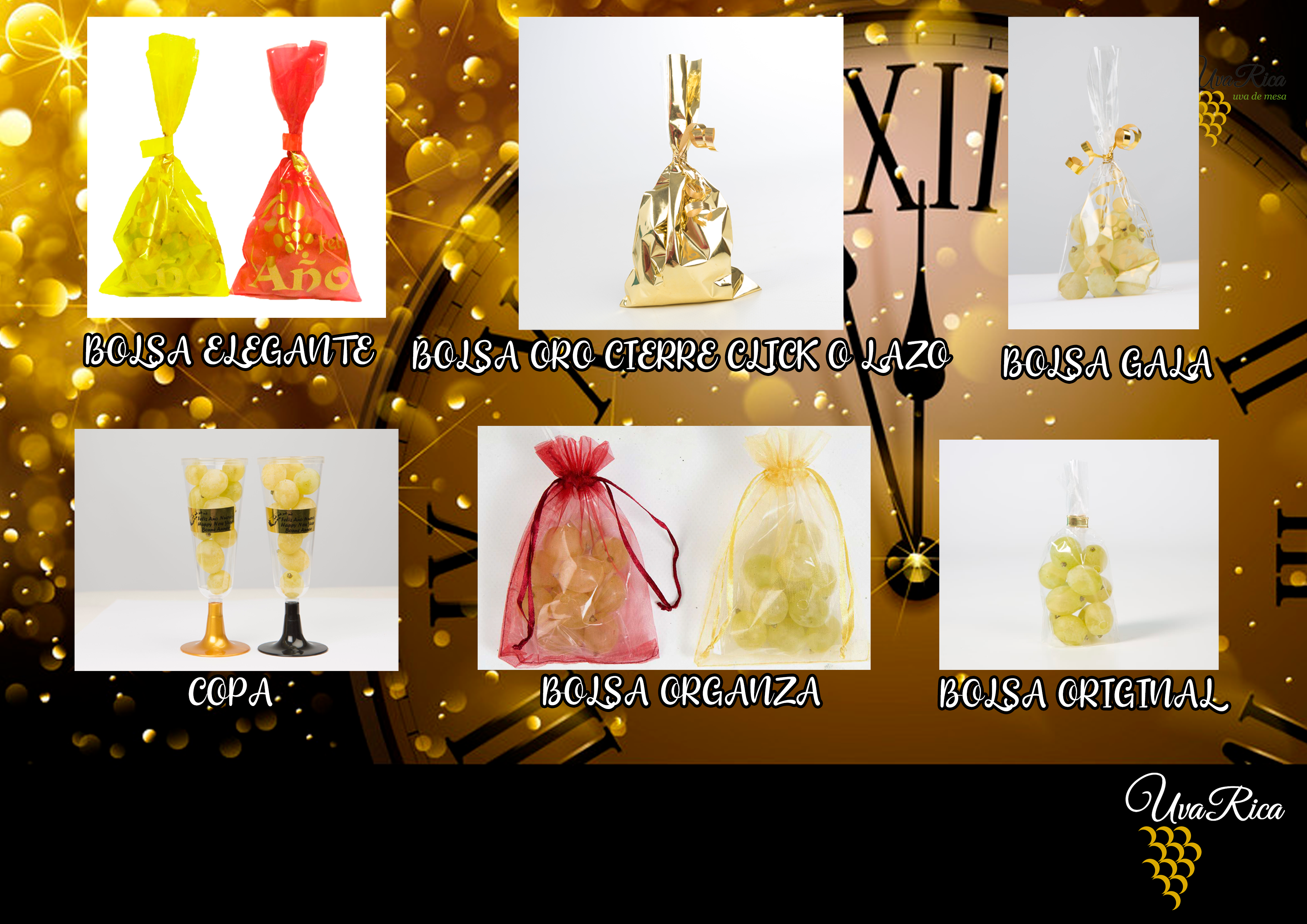 Consigue tus uvas de la suerte para nochevieja en diferentes formatos desde 0,49€ la bolsa.